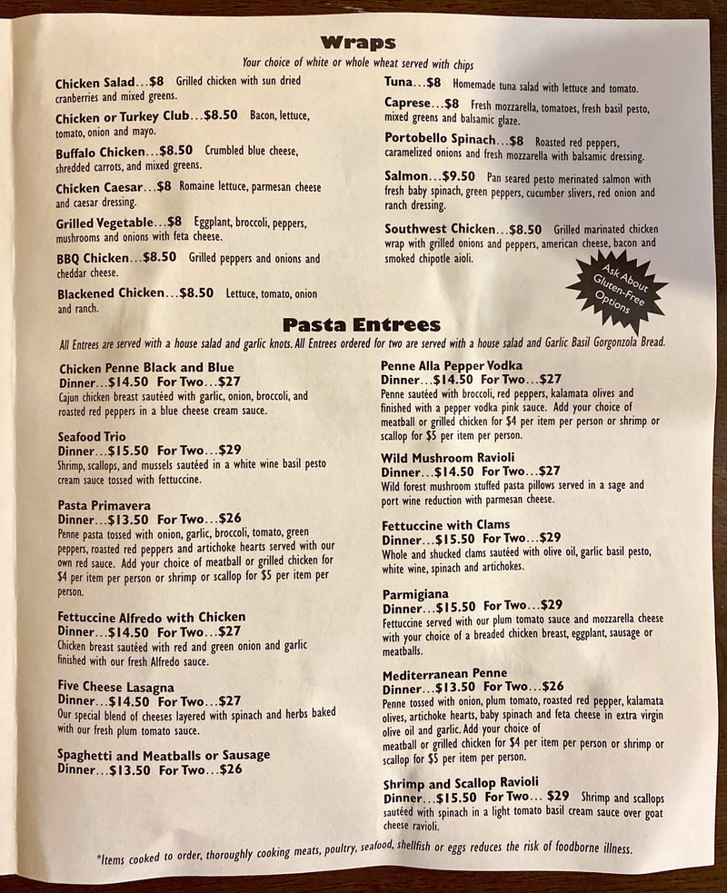 Any four pastas you'd like! All meals come with four salads and our house made focaccia.